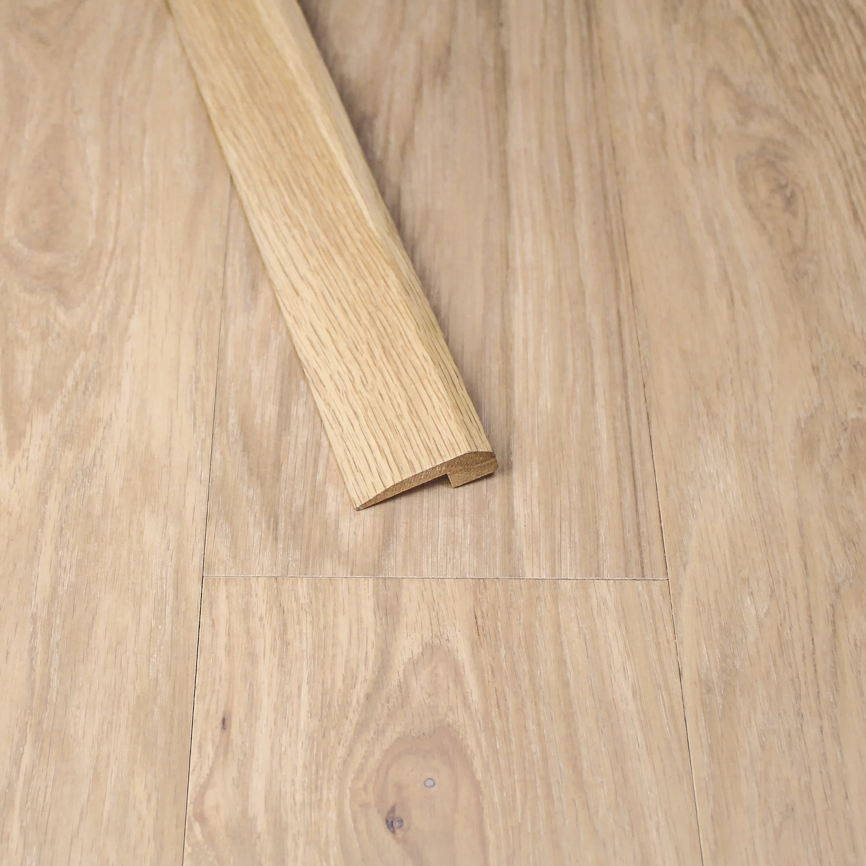 This end cap trim piece is 74.8" long. This transition piece is made from stained wood, and works with our Silvan planks.